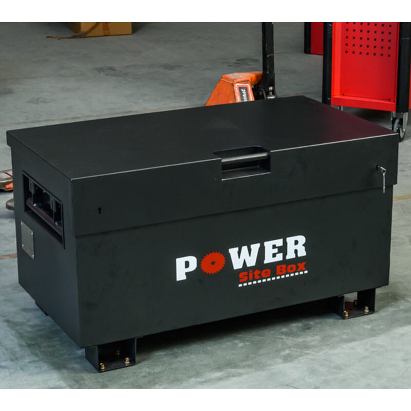 The van toolbox is spacious and ideal for storing power tools, hand tools, and other equipment. It is in black powder-coated finish.
