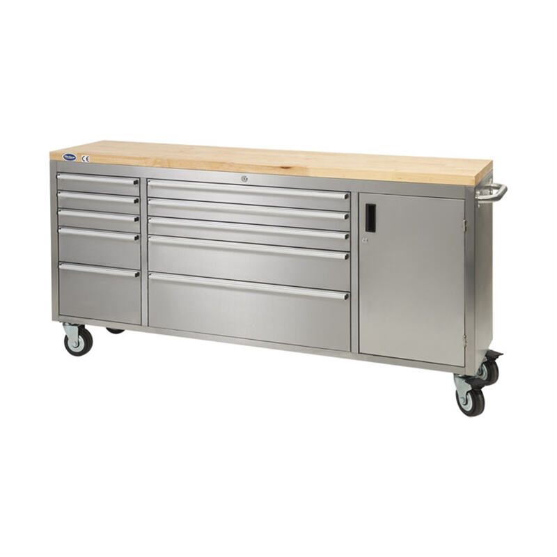 The GLS7010 is durable and sturdy. It is made from high-quality stainless steel. Each drawer has a label holder for easy identification. This tool chest comes with 2 safety locks and side handles for easy maneuverability. The unit is constructed of SPCC cold steel for durability and reliability.The heavy-duty casters allow for easy mobility around the workshop. The top surface of the tool box trolley is spacious and flat, which provides a convenient work area.